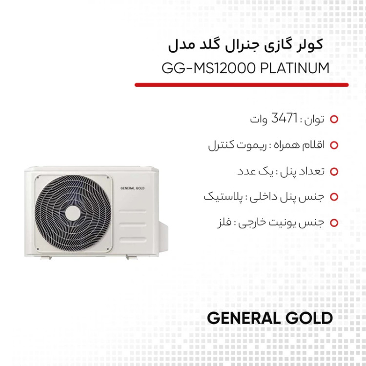 کولر گازی جنرال گلد 12 هرار مدل GG-MS12000PLATINUM (به صورت تک و عمده)